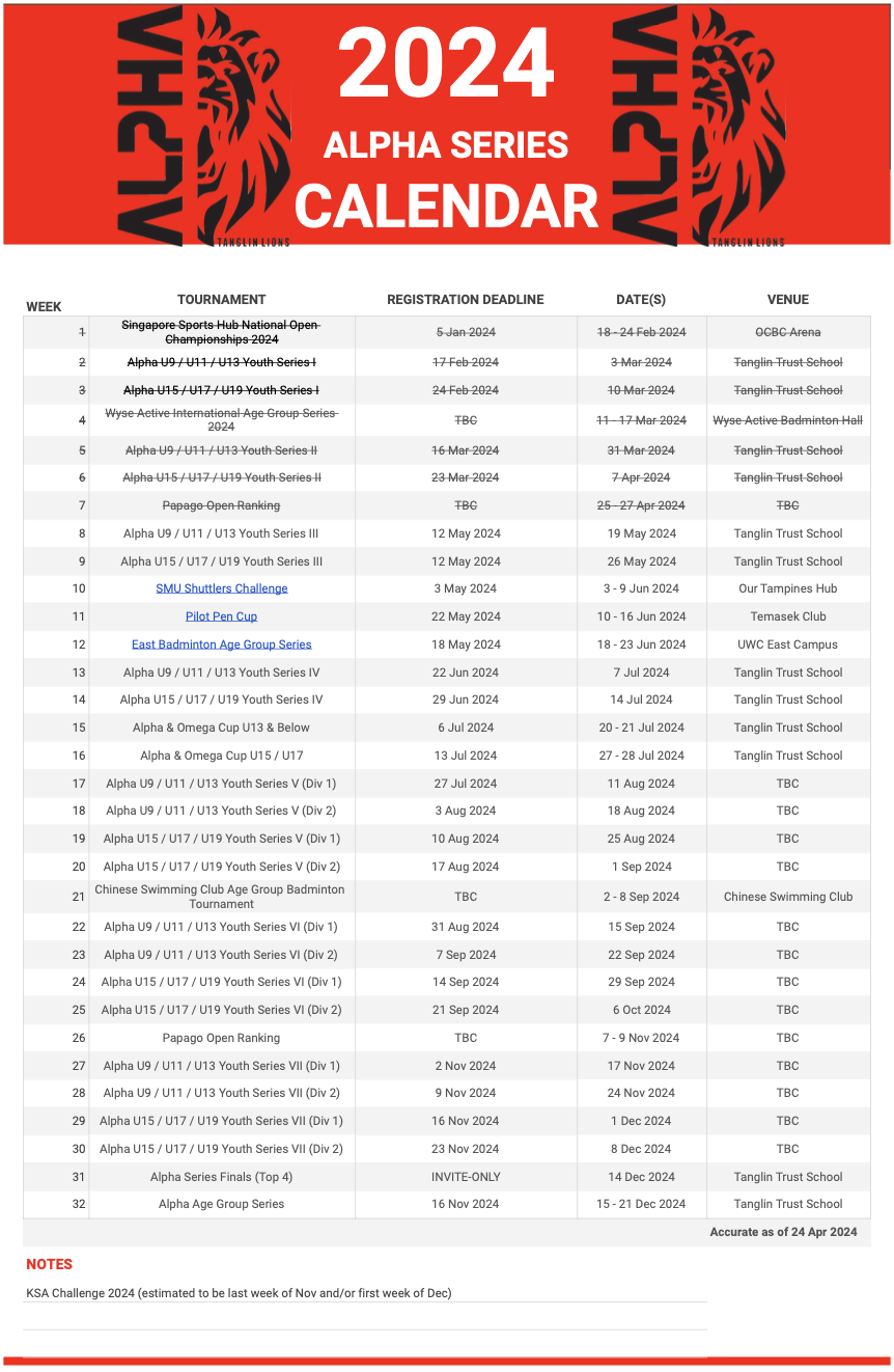 Tournament Calendar 2024 — ALPHA ACADEMY