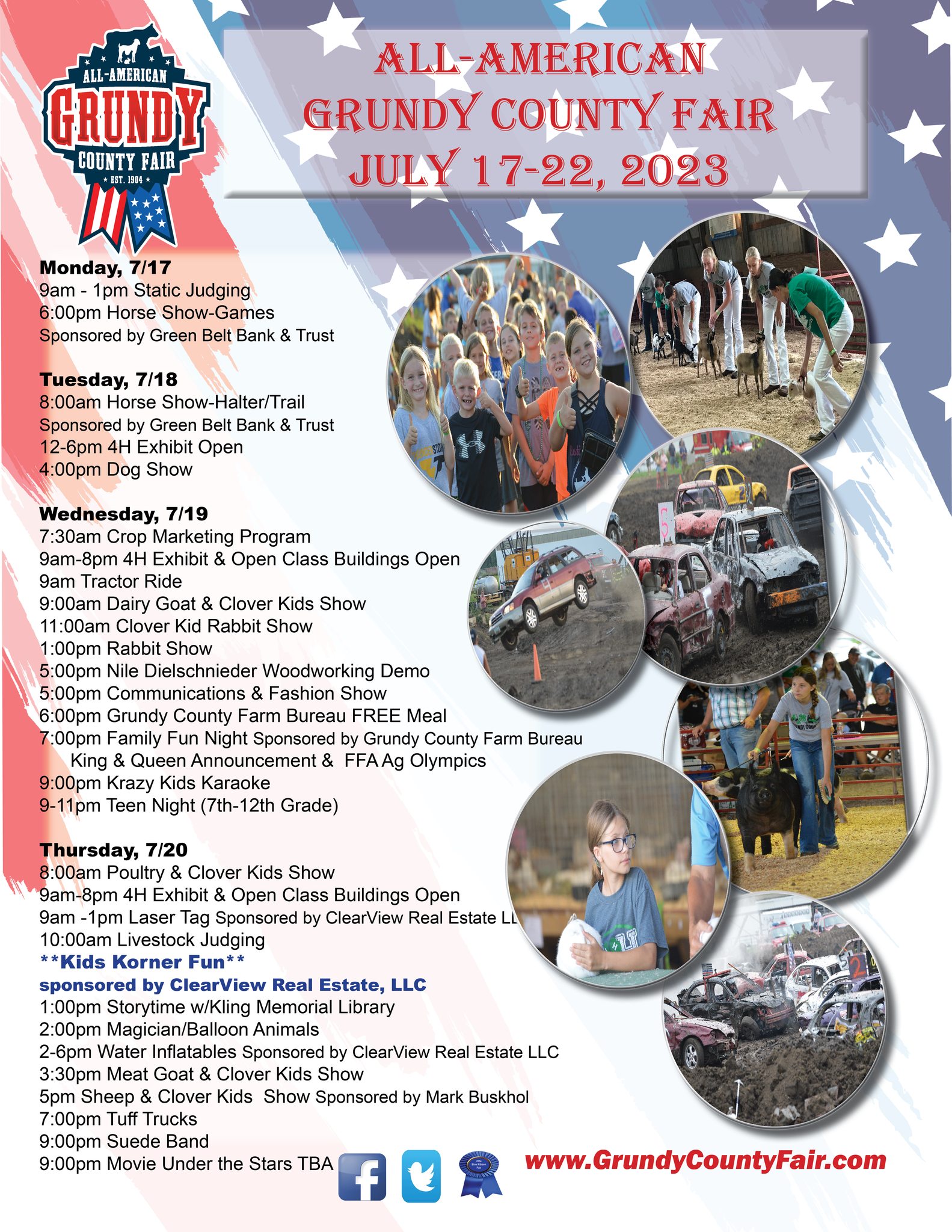 Grundy County Events Calendar Calendar of Events Grundy County Fair: The Grundy County Land Use Committee recently heard an update about the success of a paper shredding and electronic waste recycling event that was held at the Administration Building. The update was . The Grundy County Tax/Elections Committee on Tuesday heard an update about the upcoming November General Election. The update was provided by Grundy County Clerk Kay Olson, who talked about the vote .