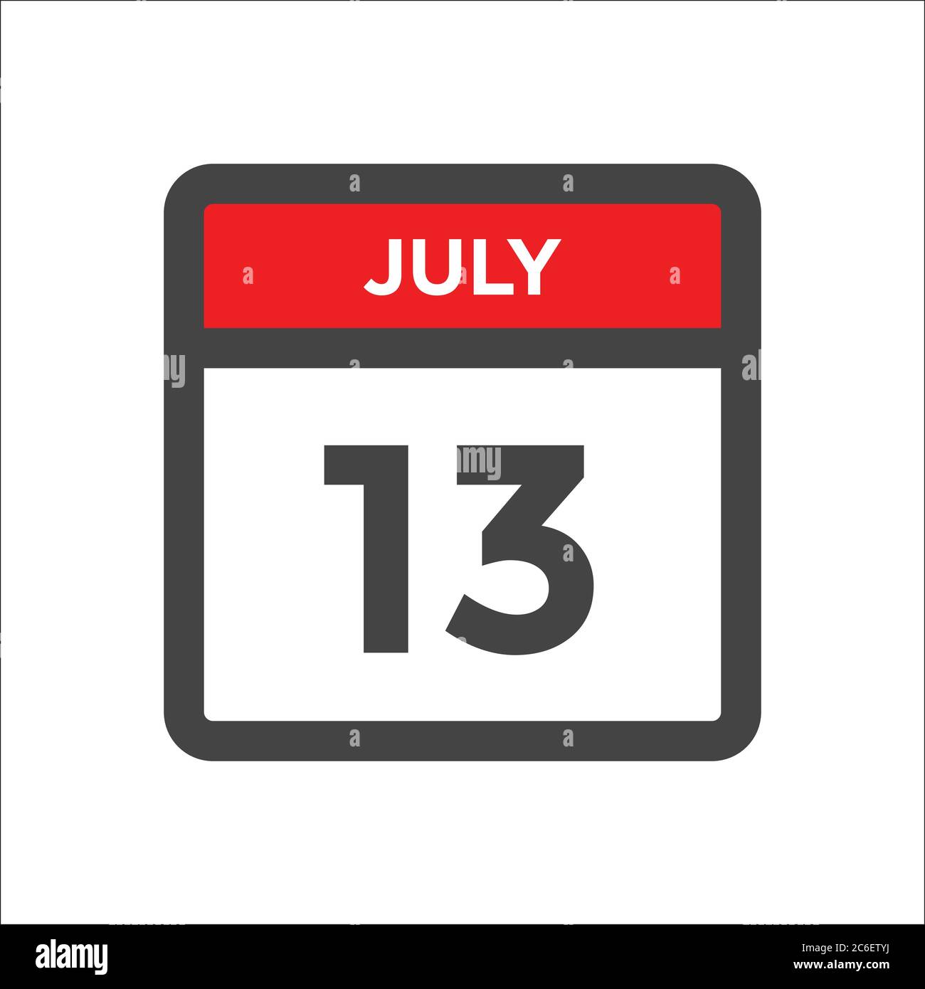 July 13 calendar icon with the day of month Stock Vector Image