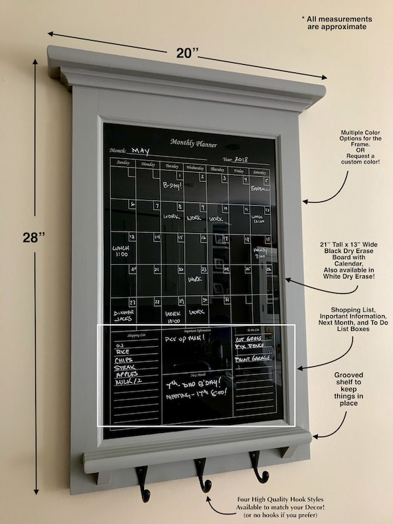 Black Dry Erase Calendar Family Planner Custom Wall Decor for