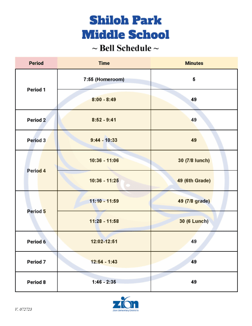 Bell Schedule Shiloh Park Middle School